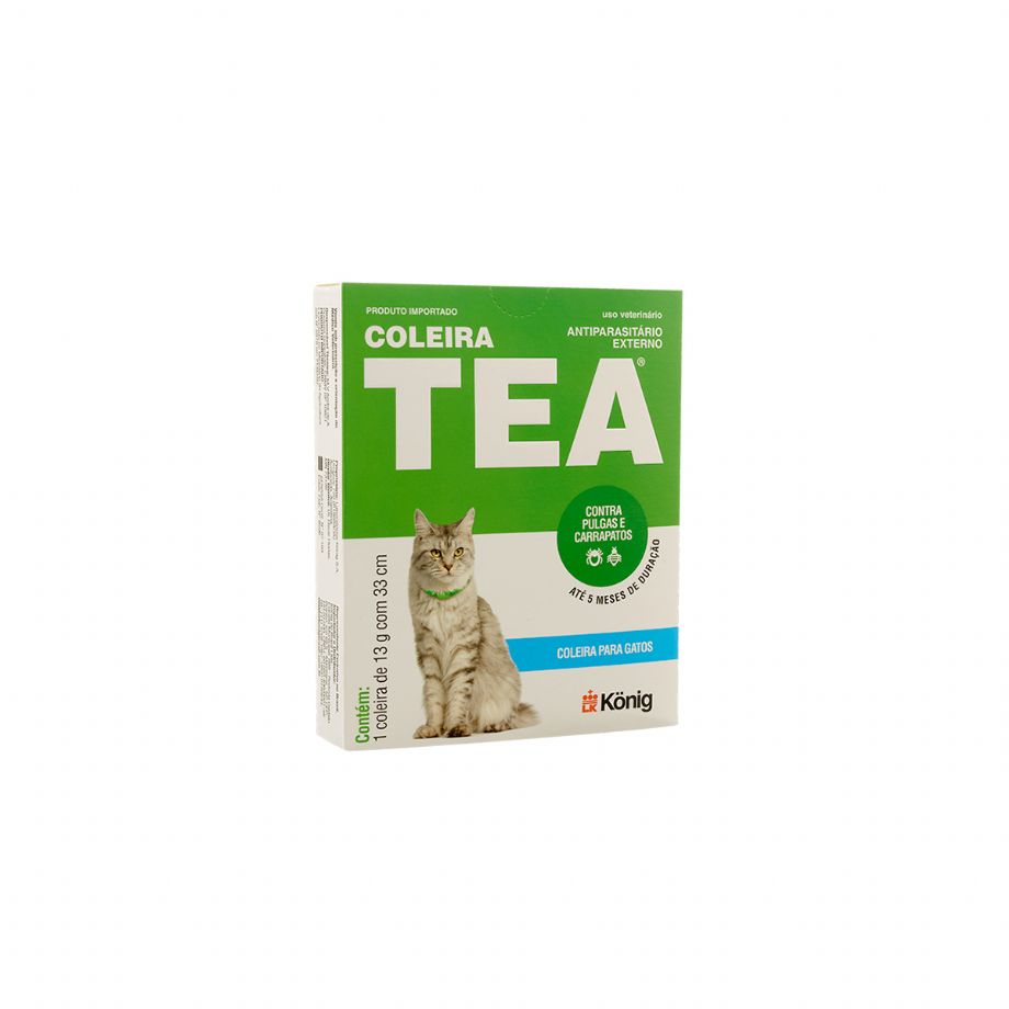 As coleiras da linha TEA® são atóxicas e ideais para o tratamento contra infestações de pulgas e carrapatos. Contêm uma matriz plástica exclusiva, que libera de forma contínua micropartículas inseticidas sob a forma de pó, não deixando o pêlo do animal engordurado. Possuem atividade ectoparasiticida por até 5 meses, auxiliando na prevenção de reinfestações por pulgas e carrapatos. Coleira gatos 13 g e 33 cm; Coleira filhotes de cães 13 g e 33 cm; Coleira cães pequenos e médios 28 g e 44 cm; Coleira cães grandes 38 g e 57 cm.