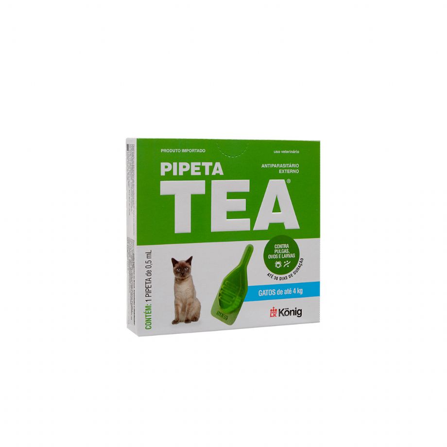 Pipeta Tea é uma solução pulguicida composta por ativos extremamente seguros e aplicados por via tópica em gatos, variando a dose pelo peso indicado em cada embalagem.