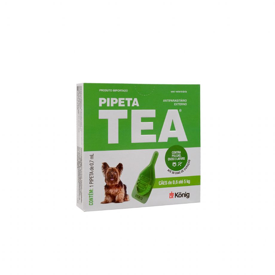 Pipeta Tea é uma solução pulguicida composta por ativos extremamente seguros e aplicados por via tópica em cães, variando a dose pelo peso indicado em cada embalagem.