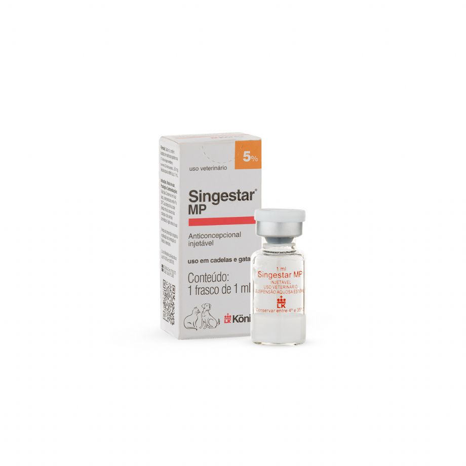 Singestar é um medicamento contraceptivo injetável que atua inibindo a secreção das gonadotrofinas hipofisárias, impedindo a maturação dos folículos, alcançando assim o controle do estro (cio).