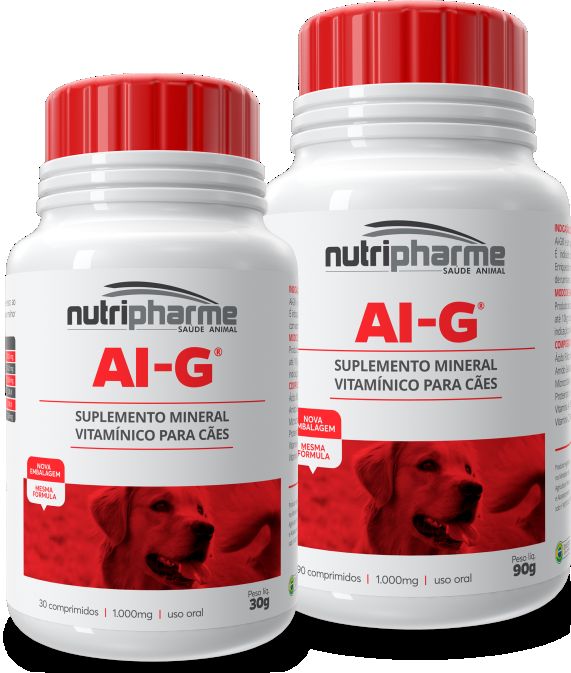 Ai-G® é um Suplemento Mineral Vitamínico para cães de uso oral. É indicado como suporte para cães em déficit nutricional. Enriquecido com vitaminas e minerais. Uso proibido na alimentação de ruminantes. Apresentação em comprimidos de 30 e 90 comprimidos.