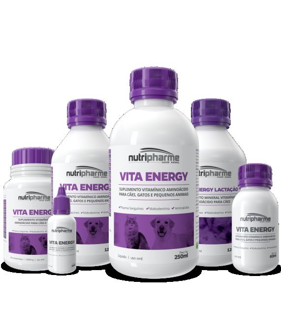 Suplemento composto de aminoácidos e vitaminas para cães e gatos. Vita Energy® é indicado para animais saudáveis como suporte nutricional, animais em treinamento, exposição ou em estado nutricional inadequado.